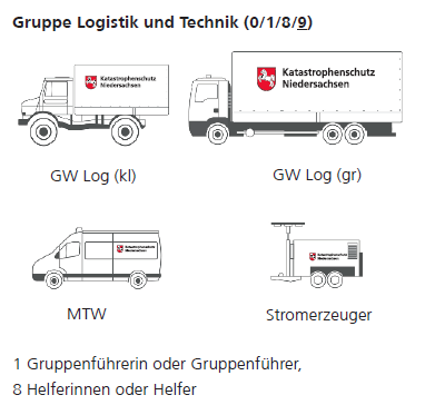 Die Gruppe Logistik und Technik führt Technik und Material für den Einsatz des BHP 50, des BTP 500 und des Wasserrettungszuges mit.