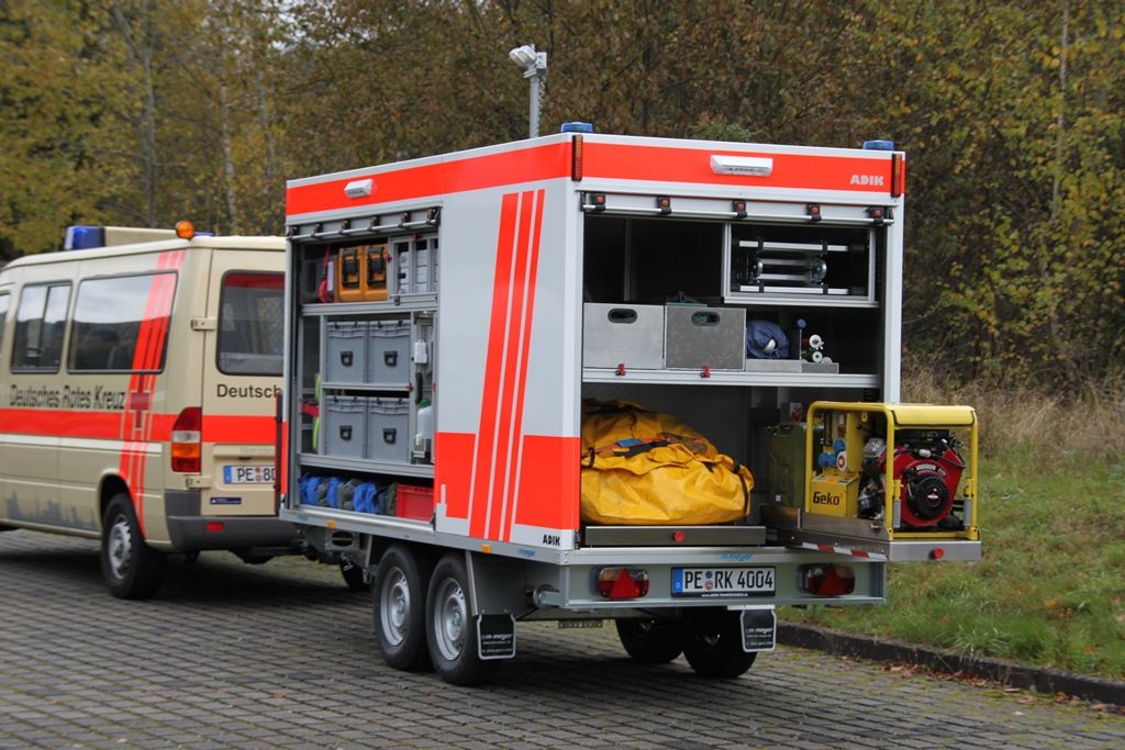Der Geräteanhänger Betreuung kann zur Versorgung von bis zu 100 Einsatzkräften genutzt werden. Zusätzlich besteht die Möglichkeit, Betroffene zu betreuen bzw. unterzubringen.
