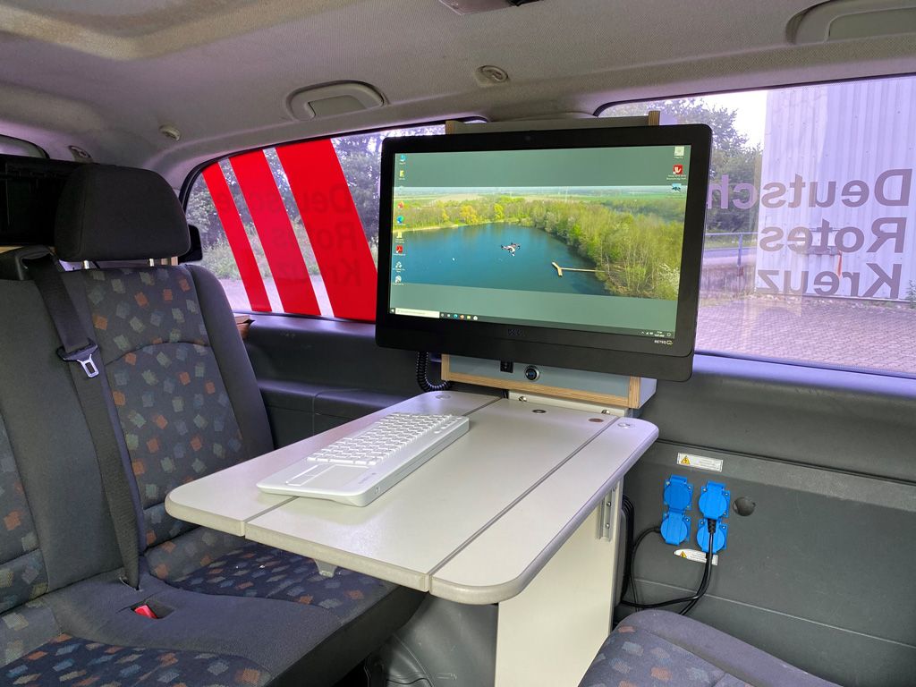 Das Fahrzeug ist mit konstantem Allrad ausgestattet. Zusätzlich befindet sich im Fahrgastraum ein EDV Arbeitsplatz mit Funkzweitbesprechung.