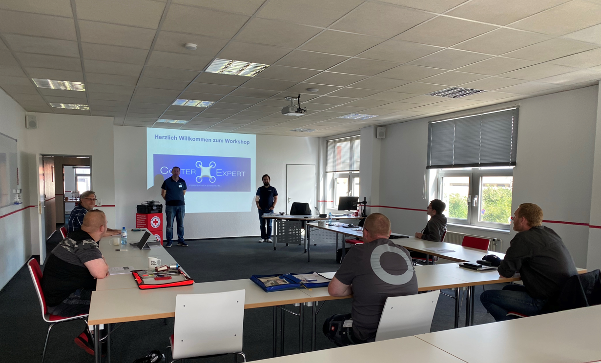In der Praxis beginnen wir mit einfachen Flugmanövern mit unserer Übungsdrohne und steigern uns nach und nach hin zu komplexen Flugmanövern mit unseren großen Einsatzsystemen.