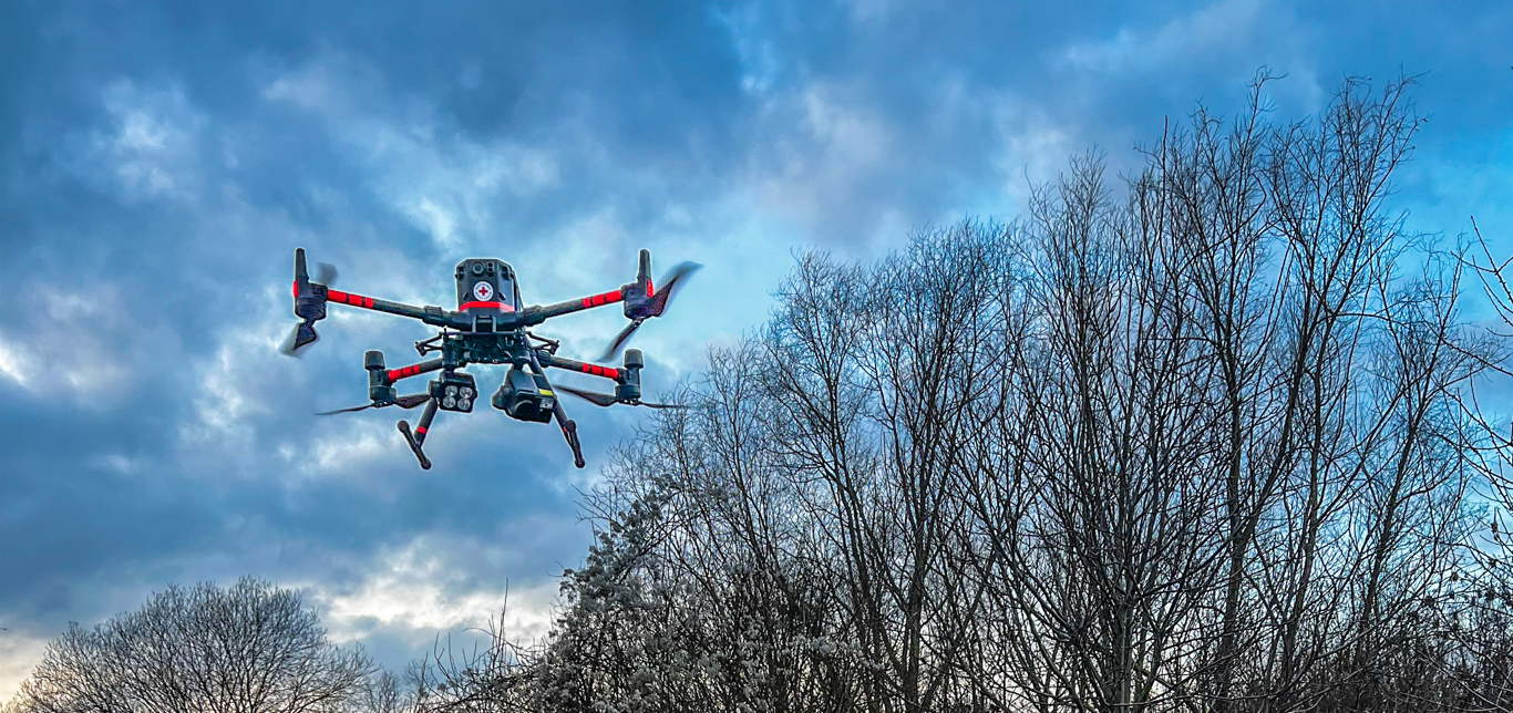Bei manchen Einsatzszenarien ist ein Blick von oben nötig, sei es zur Erkundung, zur Lagebeurteilung oder zur Suche vermisster Personen. Für unsere Drohneneinheit kein Problem!